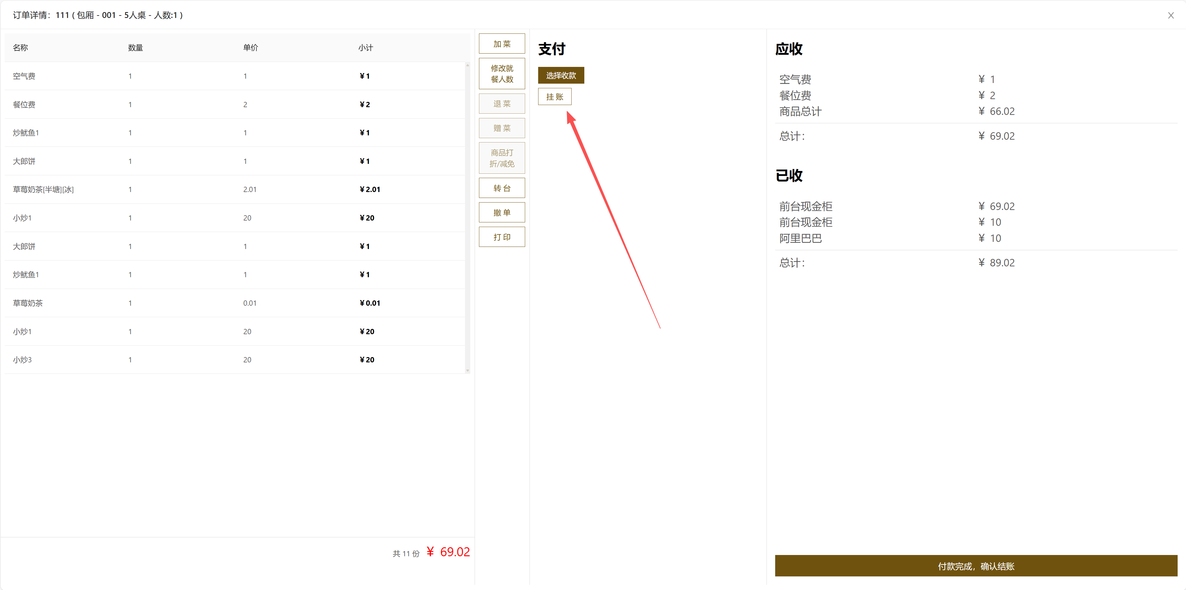 新增:餐饮增加挂账功能