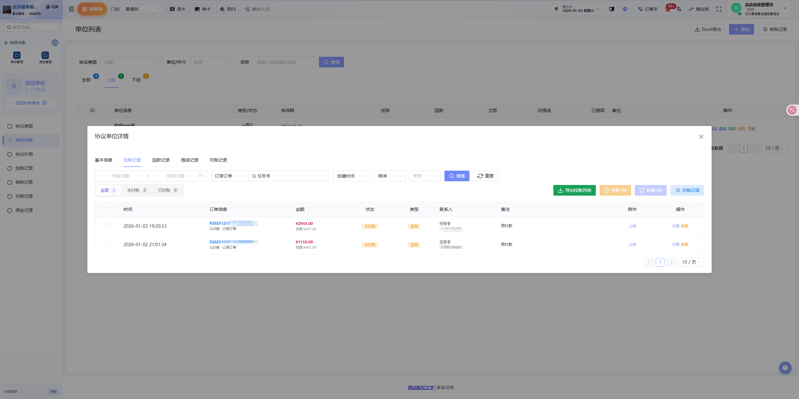 2.新增协议单位挂账列表支持排序和复杂条件搜索